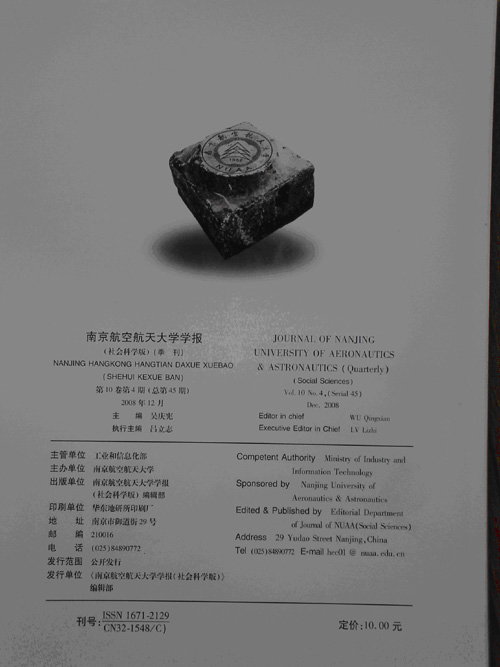 设计要求:1、简洁、庄重、大气,有南航特色;2、探索与活力,体现南航的人文气质;3、封面右上角4行和条行码移至封底。其他封面内容保持不变;4、所设计作品应为原创,避免引发著作权争论;5、详见本校学报(社科版)原设计。