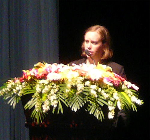 下午16时,活动正式开始,南航代表首先介绍了我校及南京各旅游景点概况;随后,美国驻上海总领事馆文化领事苏阿丽女士发表讲话,着重介绍了本次活动即将观看的影片情况;接着,一部美国影片《深海潜将》令观看的同学们对美国文化有了更深地认识,同时也激发了大家进一步了解美国文化的兴趣,纷纷与苏阿丽女士就美国文化进行了深入地交流;最后,中美代表互赠礼物表达了双方的真挚友谊与祝愿,两个小时的文化交流活动圆满结束。