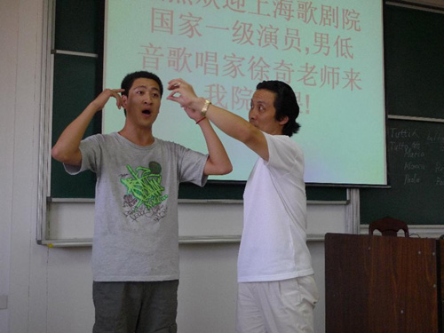此项活动是为加强我校公共艺术教育和音乐表演专业的声乐教学开展的,私人影院 邀请上海歌剧院歌剧团虢建武团长等三位中青年歌唱家来校,面向全校师生开办声乐教学活动:“大师班”活动。此项教学采取现场示范、重点点评、互动教学等方式,就中外经典歌剧名曲和师生关注的声乐教学中的问题进行欣赏与讲解。
