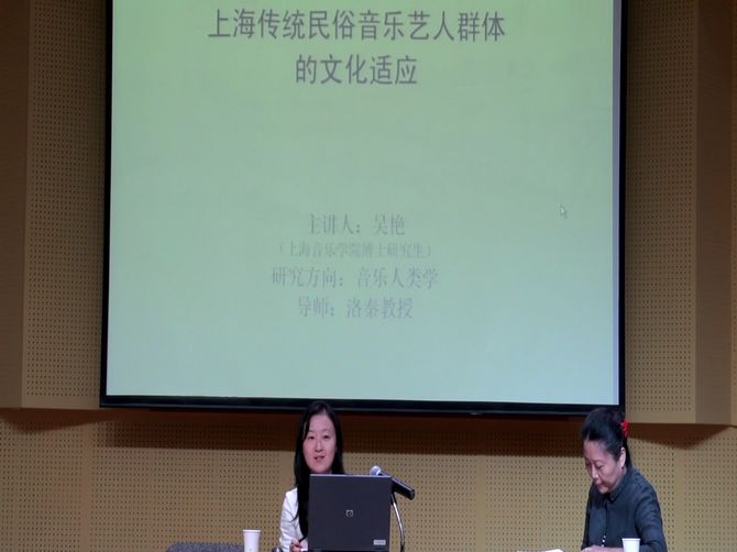 硕士毕业后就读于上海音乐学院的博士研究生吴艳的《上海传统民俗音乐艺人群体的文化适应》、及现就读于中国艺术研究院的博士研究生高舒的《当音乐被“不重要”――漳州布袋木偶戏音乐现状调查报告》及硕士研究生孟馨的《从<弦索备考>的更生看中国传统音乐传播的媒介利用》。薛艺兵教授受大会委托担任论文宣讲的主持人,并在22日下午的闭幕式上致辞。