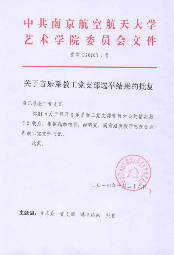 关于音乐学系教工党支部选举结果的批复
