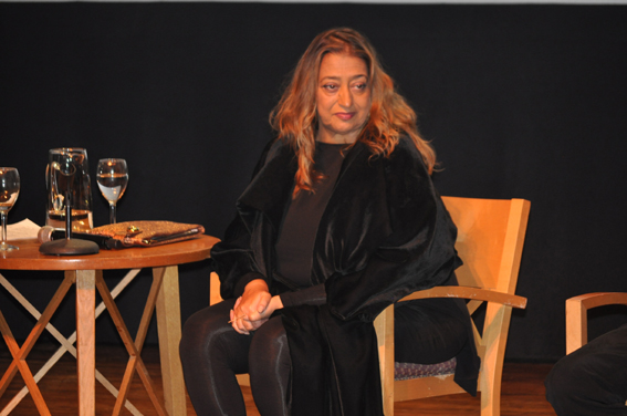 颁奖仪式结束后,Zaha Hadid接受了主持人的现场访谈,并于观众互动。Zaha Hadid信仰新的结构方式,她认为,只有真正张开眼睛、耳朵或心灵来感知自己的存在,我们才会得到真正的自由。她将新的认知转化为现存造形的重组,成为新现实的原型。Zaha Hadid以新的诠释方法创造了一个新世界,以拆解题材和物件的方式,塑造了全新的景观和结构。