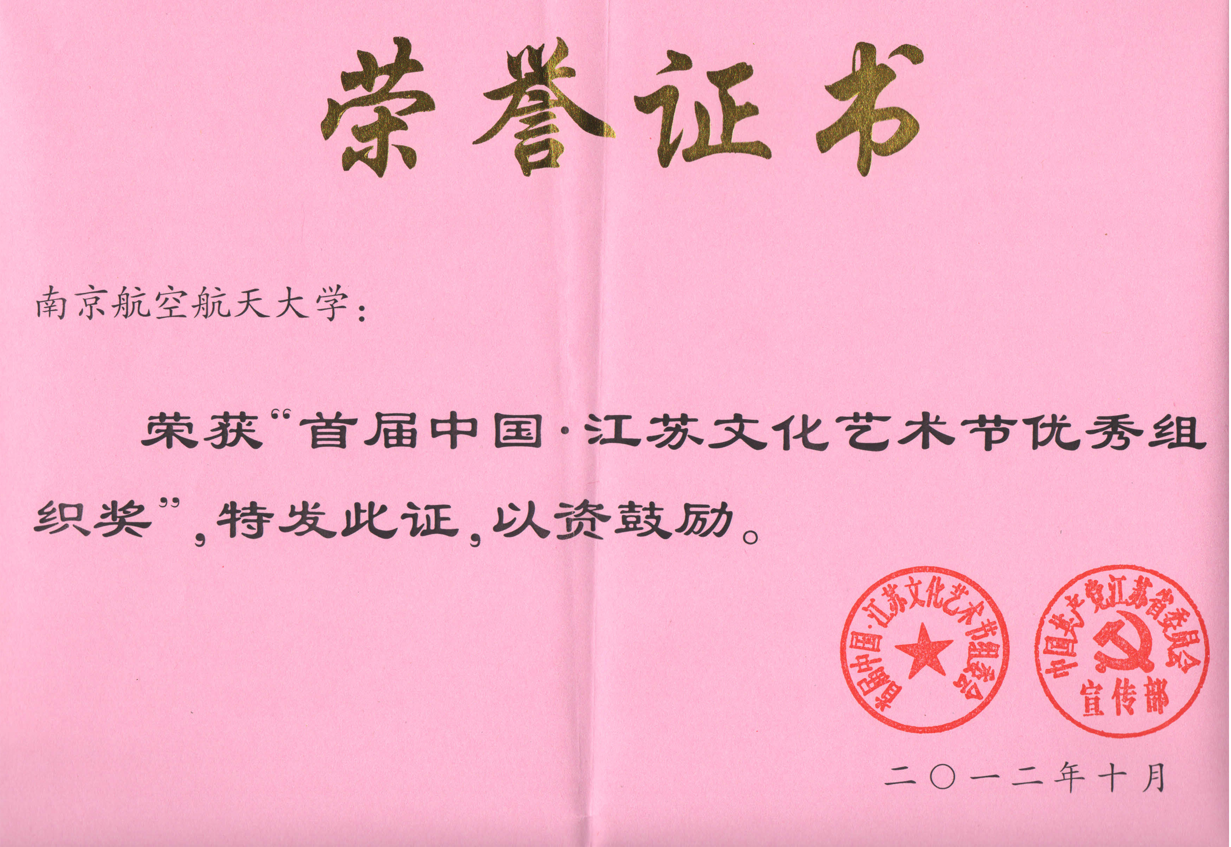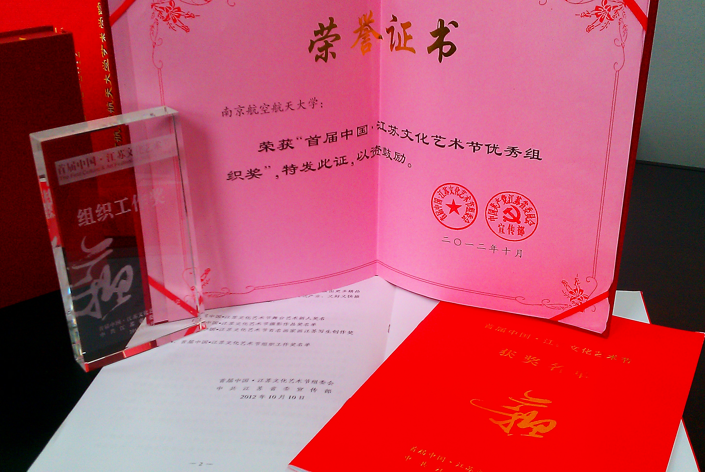 我校获首届中国・江苏文化艺术节“组织工作奖”