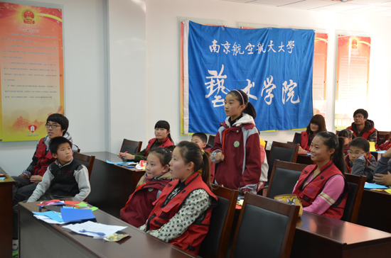 当天下午,私人影院 的13名义教班志愿者来到位于安德门社区的志愿服务基地,为 9名来自南京市小行小学的农民工子女进行了艺术教学,这节课的主题是用卡纸拼贴的形式制作各式各样的飞行器。