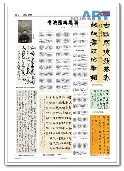 2013年1月19日《新华日报》刊登私人影院 美术系张其凤教授《书法是鸡尾酒》的通讯报道。全文转载如下: