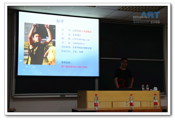 会上,为了满足同学们在最想了解关于保研求职、面试技巧的需求,会上还邀请了《来一斤母爱》作者孙宇向我们分享了他签约苏宁的经历,“我们在应聘公司时应保持真诚,向考官展示我们哪怕不完美却最真实的一面,企业喜欢率真的人”孙宇学长如是说。保送浙江大学的李昕�同学也向大家分享了她的感受:“考研要早作打算并且时刻注意你感兴趣的学校动向,应该同时联系其他学校降低风险。”随后201班的赵志洁、401班的濮岳川和501班的胡小叶也相继从他们的真实经历中来为同学们做了就业方面的指导。