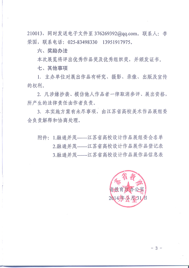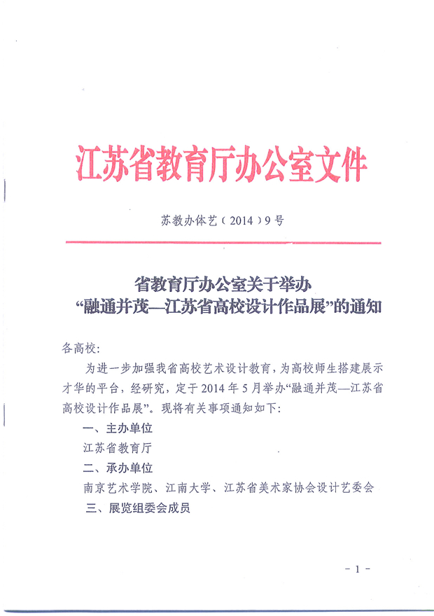 省教育厅办公室关于举办“融通并茂―江苏省高校设计作品展”的通知