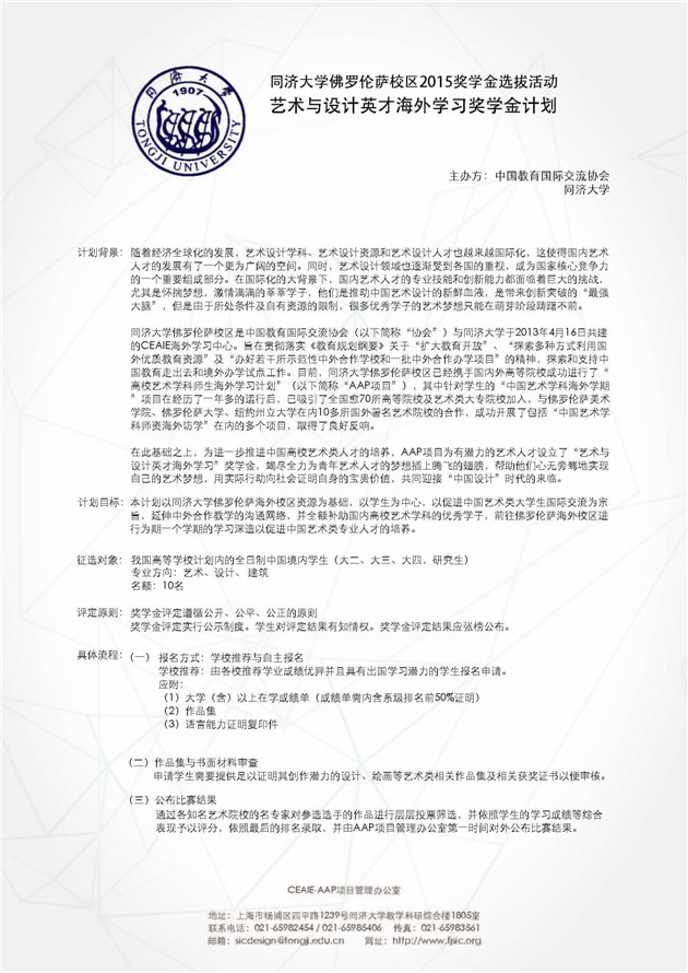 2015艺术与设计英才海外学习奖学金计划