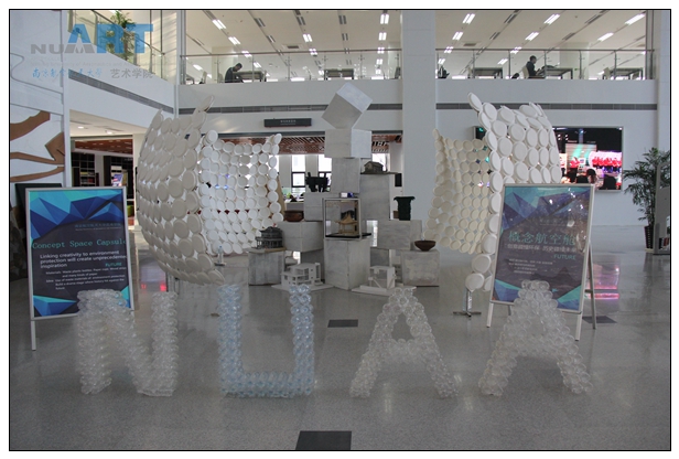 这次作品展主题是“概念性未来航空仓”,展出的主体是利用废旧物搭建的外形类似机舱的小屋,具有南航航空特色,又融入了环保理念。据悉,“航空舱”由我校私人影院 戏剧影视美术设计专业学生设计,曾参加南京电视台生活频道《节约365周末英雄会》栏目,并凭借独特的设计获得“南京环保大使”称号。