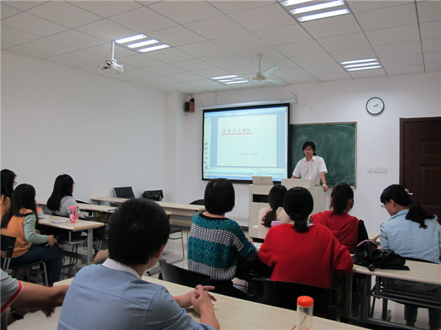 陈启林老师首先对艺术是什么、艺术的本质特征,以及艺术与哲学的关系进行了简单的普及性介绍,让非艺术专业的学生能够对艺术有一个概念性的认知。进而对视觉艺术的类型、要素、形式原理及视觉艺术的理念四个方面重点解读,其中在讲到视觉艺术的类型中提到了摄影的历史起源与绘画艺术的互通之道,并且分析了电影的美学特征,论证了在视觉艺术的前提下,不同艺术形式发展规律的一致性和统一性;他认为视觉艺术的要素的核心就是“学会看,学会感受”,可以“方寸之地看万千世界”,更多的是要靠个人对艺术作品产生一种唯我独有的观看感受;用“美在比例”一词准确地概括了视觉艺术形式原理的特征,即统一性、平衡性等,通过列举现实生活中实例,帮助同学们理解深奥的术语名词;最后阐释了视觉艺术的理念,简而言之则是“做作品和欣赏作品的尺度”,分别从审美的形态和对“美”的找寻两个方面进行详细讲述,先是对审美形态进行一个分类,包括优美、崇高、悲剧、喜剧、荒诞等,在讲述对“美”的寻找时,分别从中西方不同的寻找方式进行分析,归纳了西方从艺术起源以来的关于“美”的理论,如“美是理念”、“美是崇高”、“美在形式”、“美在关系”、“美是无利害感的主观普遍性”、“美在于表现事物的主要特征”等等,提出“事物在特征化后才能进行典型化”进而达到艺术化,然后对中西方找寻“美”的差异进行比较,认为中国讲求“天人合一”,而西方热衷于“征服自然”,两种不同的艺术思维产生出不同的艺术作品。