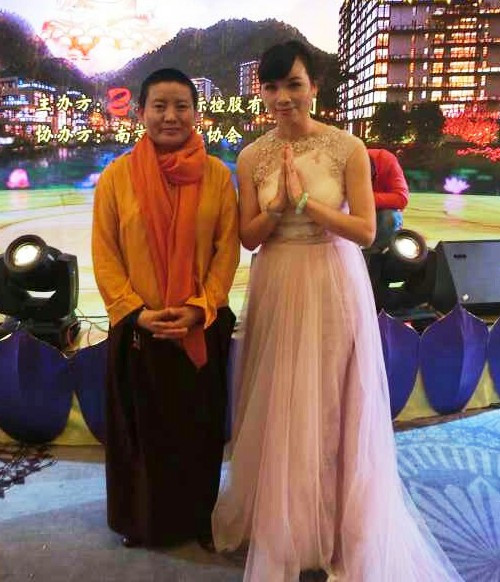 邱爱金老师和来自世界各地的艺术家一起登台献艺,为盛典贡献了一场精彩的演出。除了邱老师演唱了《南无阿弥陀佛》和《芦花》两首歌之外,来自尼泊尔的世界著名佛曲咏唱者琼英卓玛演唱了《Namo Ratna Traya Ya》和《Seven line prayer to guru rinpoche》,中国著名的西藏佛曲组合雪莲组合献唱了《圆圈圈》和《阿伊瓦》,以及著名古琴演奏家,中国古琴协会理事葛勇现场演奏了《报父母恩咒》,《高山流水》。另外还有其他丰富的佛教音乐节目。