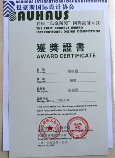 近日,“包豪斯奖”国际设计大赛圆满落下帷幕,私人影院 2013级戏剧影视美术设计学生唐望云的作品“竹语•U盘”在首届“包豪斯奖”国际设计大赛中荣获产品造型类铜奖,作品被北京包豪斯设计博物馆永久收藏并收录于《包豪斯设计年鉴》,作者同时被推荐加入包豪斯国际设计协会。