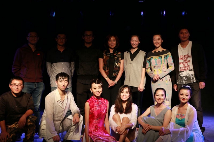 师生们在做舞蹈灯光效果最后调整
