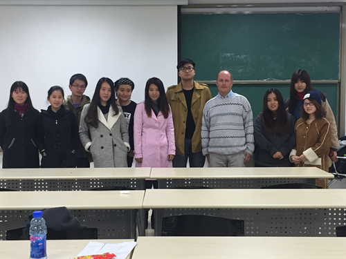 学生讲授《西方媒体内容的理解与分析》课程,四十名本科生和十名研究生选听了该课程。