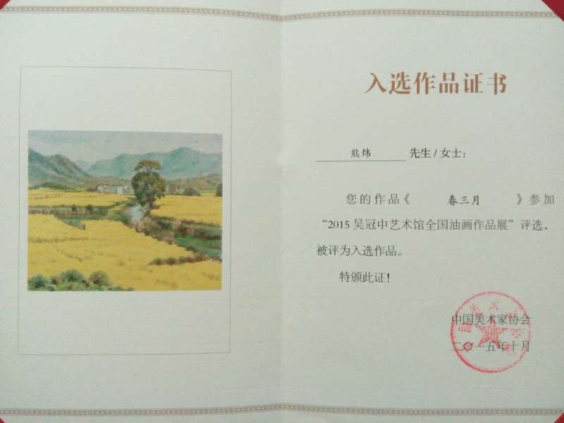 金秋十月,私人影院 熊炜教授油画作品《春三月》入选“2015吴冠中艺术馆全国油画作品展”。此次展览由中国美术家协会、宜兴市人民政府主办,于2015年10月2日在陶都宜兴市盛大开幕,是吴冠中艺术馆首次举办的全国性油画作品展。