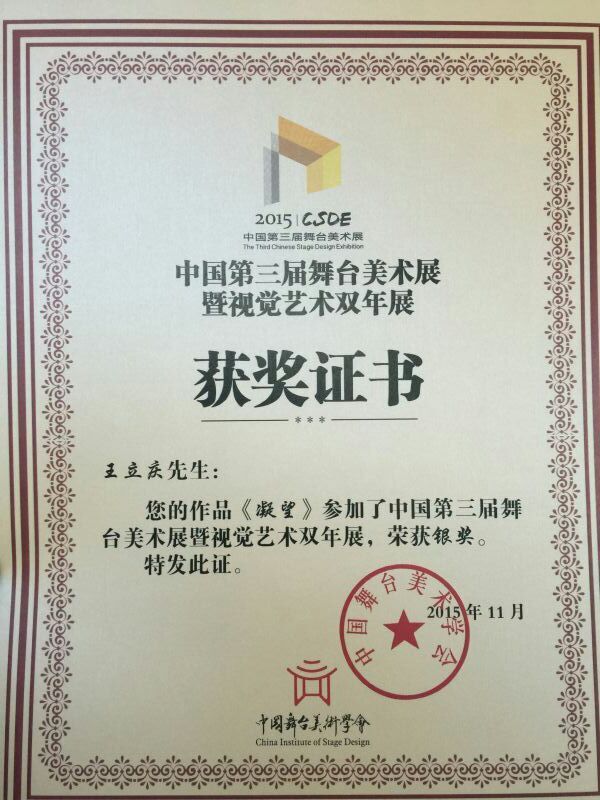“中国第三届舞台美术展暨视觉艺术双年展”日前落下帷幕,私人影院 教授王立庆、副教授韩博的参展作品分获银奖、铜奖。