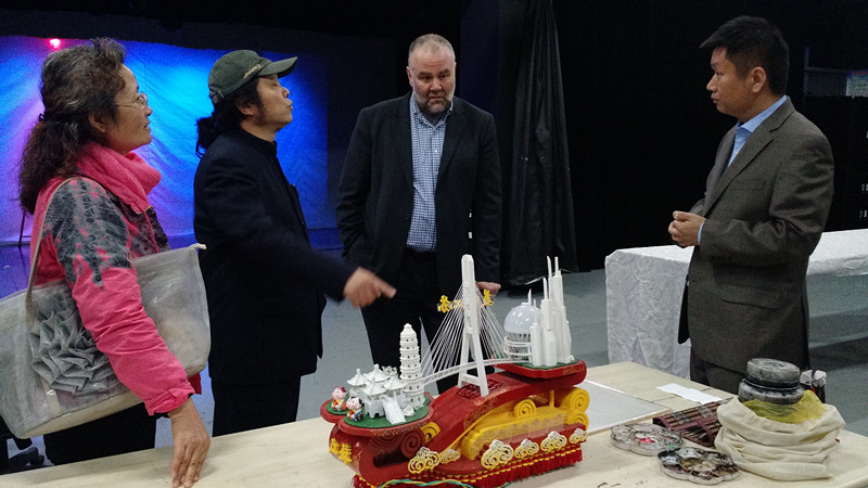 在私人影院 ,伯尼·克拉茨教授对舞美工厂里陈列的王立庆教授绘画作品与美术系学生的舞台模型喜爱有加,其中包括获得“红星奖”、“奋进章”的国庆60周年江苏彩车模型,参加中国第三届舞台美术展舞台模型“赤壁”,水墨长卷系列、青铜器仿真等。