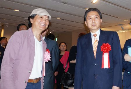 日本前首相鸠山由纪夫、中国驻日本大使馆文化参赞陈诤、公益财团法人日中友好会馆中国代表理事郑祥林、私人影院 代表赵冬辉、社团法人日中协会理事长白西绅一郎、株式会社黄山美术社社长陈建中、社团法人日本徽商协会会长张书明、日中商务促进会会长张佶等嘉宾为开幕式剪彩。