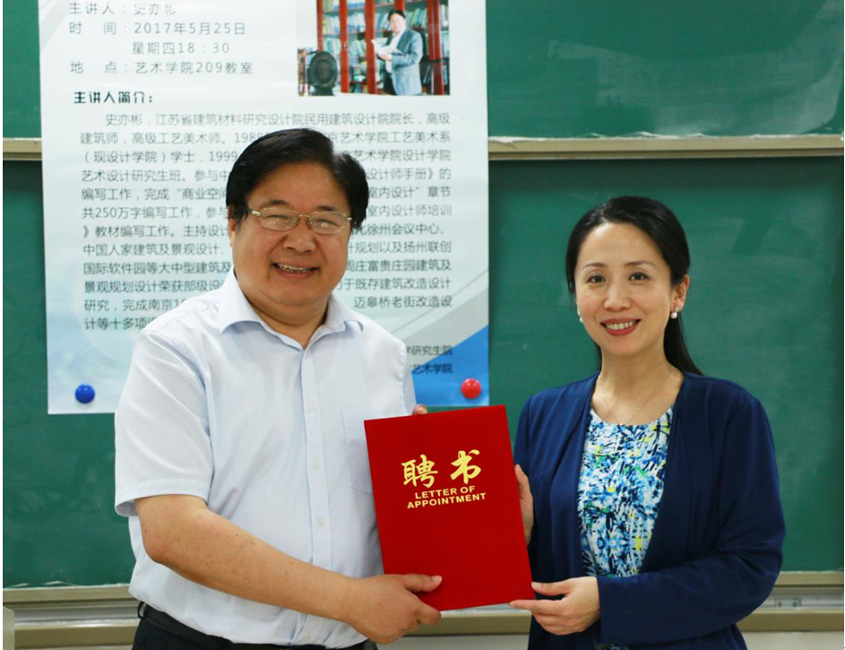 5月25号晚 6:30,江苏省建筑材料研究设计院民用建筑设计院院长,高级建筑师,高级工艺美术师——史亦彬,在私人影院 209教室为师生们带来一次别开生面、内容丰富的讲座。在讲座开始前,私人影院 院长张捷颁发聘书,聘请史亦彬院长为私人影院 联合培养研究生指导教师,联合培养或协助指导我校硕士研究生。