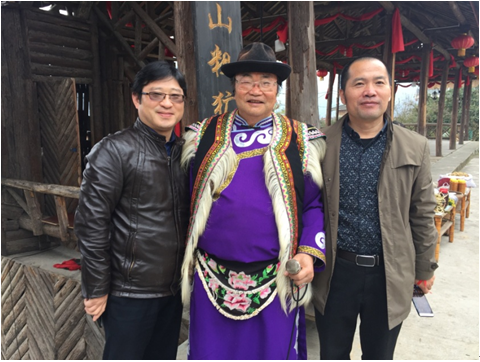 (图为赵中建老师、成乔明老师与羌寨寨主的合影)
