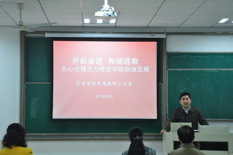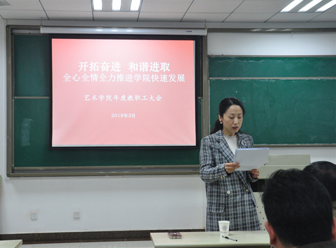 张捷院长紧扣学校第十六次党代会精神和学校学期初干部教工大会精神,结合学校对艺术办学的要求和定位,围绕艺术发展规律、专业学科特点和学院发展形势要求,从完善制度建设、加强师资队伍建设、推进学科交叉融合、教学科研团队建设、高水平教学成果和科研项目培育、开展教育思想大讨论、人才培养机制改革、年青教工培养、国际交流、艺术服务校园文化建设和人才培养、开放办学和党的建设等方面对学院年度重点工作进行了详细解读和布置。她希望全院教职工戮力同心,和衷共济,按照校十六次党代会提出的“一个中心、五路并举”的战略布局和学校新学期教工干部大会精神,找准学院融入和学校的突破口和着力点,探寻学院新时期发展的增长点,打破学科、专业界限,整合和利用学院和学校各类资源,寻求“艺术+科技”的协同发展特色之路,为学院的可持续及跨越发展开创良好局面。