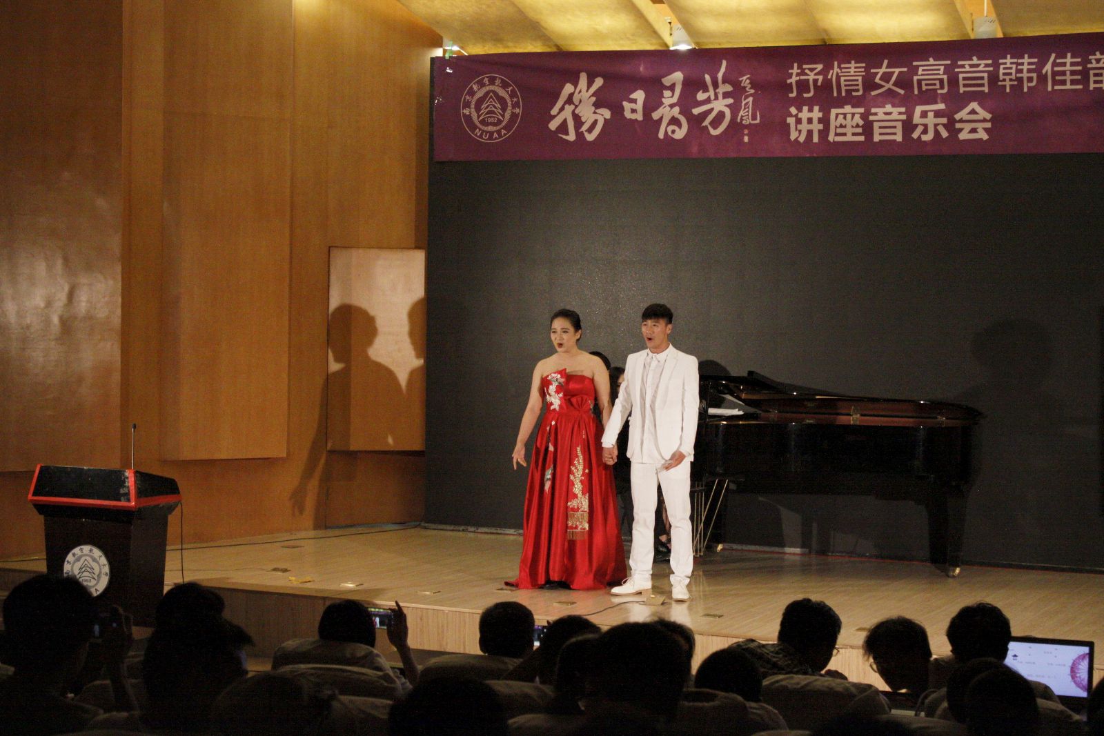 “作为一名音乐专业学生,在自己的毕业前夕为大家演出一场主题鲜明的音乐会非常有意义,音乐是最具有感染力的,感谢我的导师邱老师能够将思政与我的音乐会相结合,让这场音乐会有了灵魂和精神”本次音乐会主唱韩佳韵动情的说道。