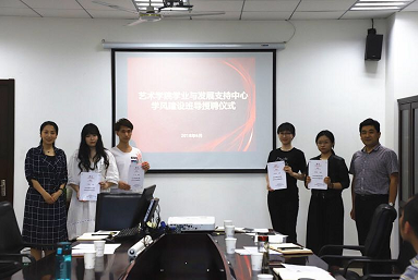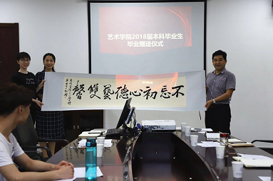 学业发展支持辅导中心2019级新生班级的学风建设班导,在读研期间每个人联系指导一个班级,从生活习惯养成、专业学习规划等对新生进行陪伴和指导,为学弟学妹的成长贡献智慧和力量。 学风建设班导也是学院学风建设的一项重要举措,发挥学院优秀本科毕业生的示范作用,对本科新生开展朋辈指导和辐射,同时通过学风建设班导,也打通研本教育纽带,实现研究生和本科生教育的资源融合共享。 最后,2018届毕业生代表孔令博文向学院赠送了他们精心准备的礼物——“不忘初心,德艺双馨”,这是2018届毕业生对学院最真心的祝福,也是学院对毕业生最美好的期待。