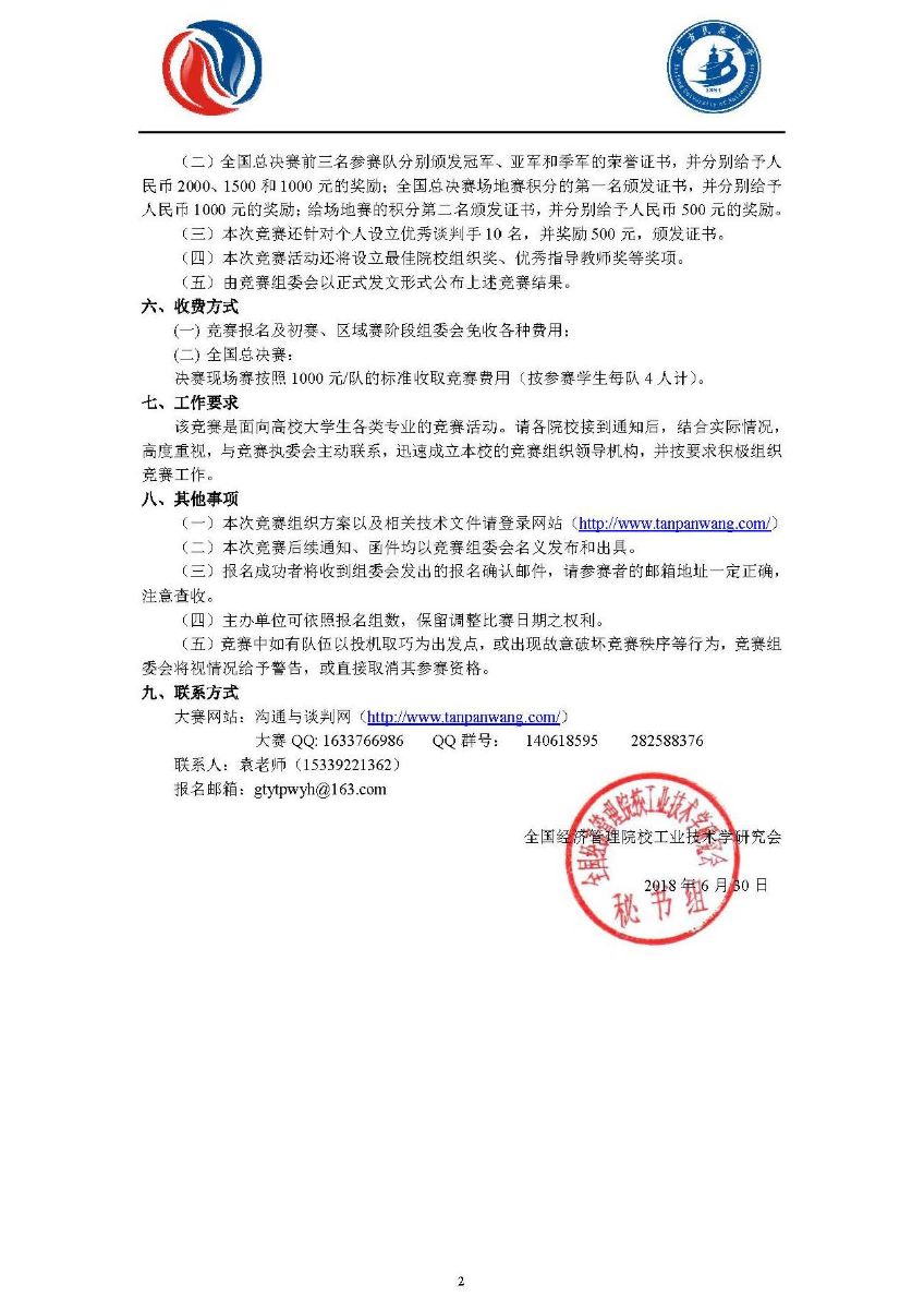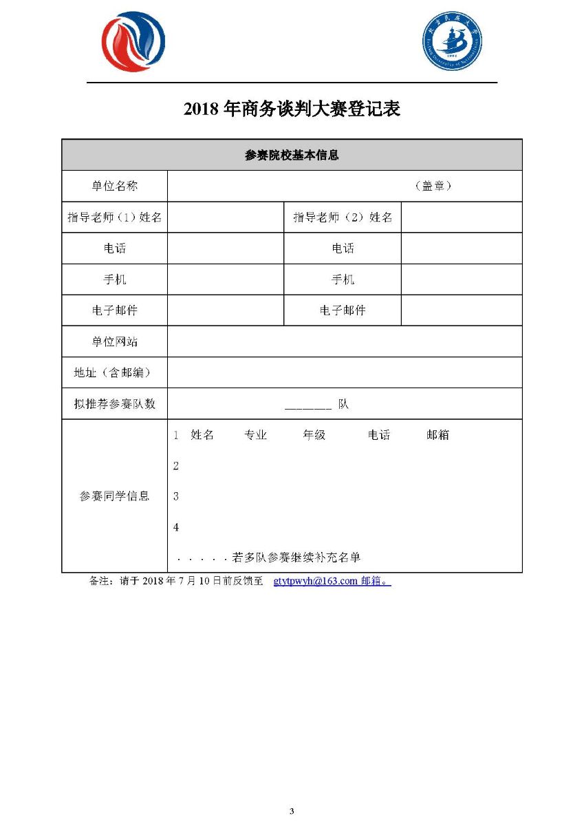 2018年全国大学生商务谈判大赛登记表
