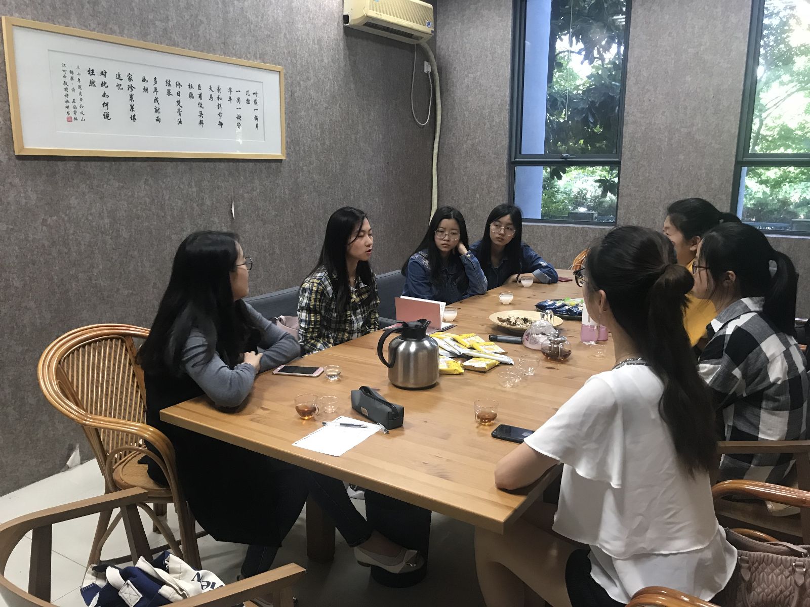 本次交流会不同于以往严肃的会议,特地选在咖啡馆进行,目的是让记者团的同学们在这种轻松愉悦的氛围里畅所欲言,同学们相继提出了不同的创意活动,大家集体讨论,不断完善,将本次交流会推向一个小高潮。“这种一边喝下午茶,一边开会的方式我还是第一次体验,的确让我比平时更有灵感!”华文婷同学这样说道。