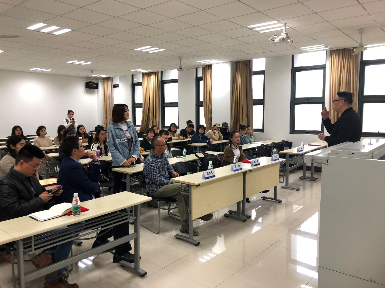 揭牌仪式后,鞠飚先生代表企业向在场的同学们发布了校企兴趣小组项目,该项目设立了校企双导师,企业安排行业专家为俱乐部学生授课,引导学生结合企业课题开展专项学习。鞠飚先生还从多个维度介绍了舞台美术的多元化发展,同时结合自己的职场经历与同学们进行了深度交流,敦促大家树立“目标”意识,培养对行业方向的敏锐捕捉能力,争做有梦想、有行动力的优秀大学生。同学们也积极思考发言,结合自己日常学习中的问题和专业发展的疑惑进行提问,逐渐明确未来发展道路。