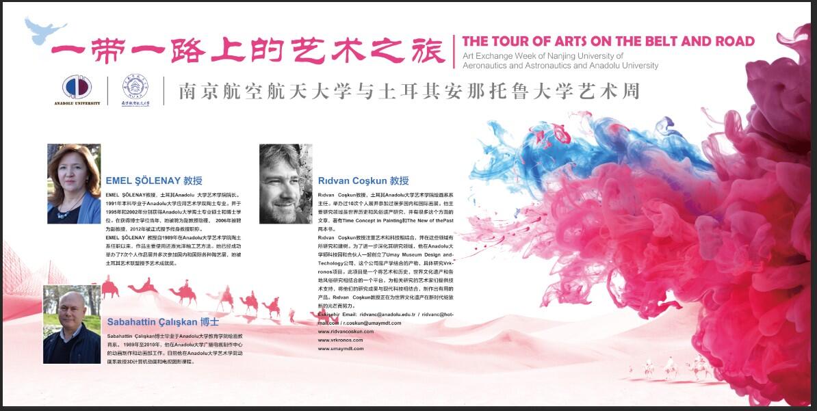 11月12日-11月21日,土耳其安那托鲁大学(Anadolu University)私人影院 院长EMEL ŞÖLENAY 教授和Rıdvan Coşkun教授、Sabahattin Çalışkan博士、安纳托鲁大学对外联络部主任冯莉莉一行,受邀来校开展学术访问交流,并联合我校私人影院 举办“一带一路上的艺术之旅”交流周活动。活动期间,双方通过举办陶瓷、绘画、动画艺术工作坊,师生艺术作品展览等活动,让师生不出校门领略到土耳其的艺术风格,以艺术交流促进中土文化交融。