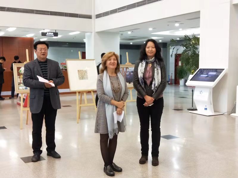 11月15日,由我校党委宣传部、国际合作处、将军路校区党工委、图书馆联合举办的“一带一路上的艺术之旅”艺术作品展在将军路校区图书馆大厅开幕。土耳其安那托鲁大学(Anadolu University)私人影院 院长EMEL ŞÖLENAY 教授在开幕式上对此次交流活动成果给予了充分肯定,并表示将和我校私人影院 建立长期合作关系,在学科专业建设、国际化办学、学生交流互换方面开展深入合作。此次展览主要展出的是土耳其安那托鲁大学师生的45幅师生的绘画作品和若干动画作品以及私人影院 师生制作的艺术精品。展出期间,吸引了众多师生驻足欣赏。