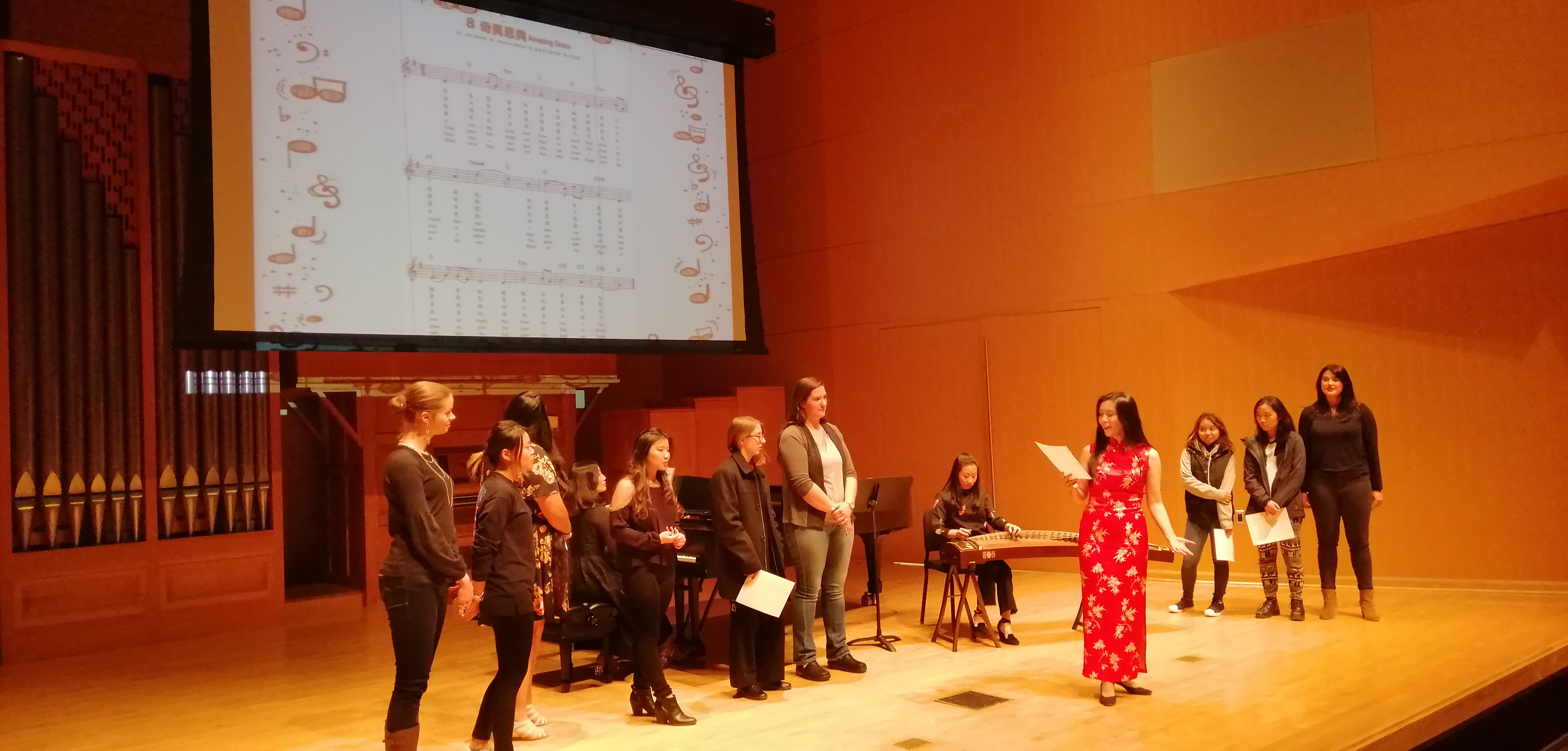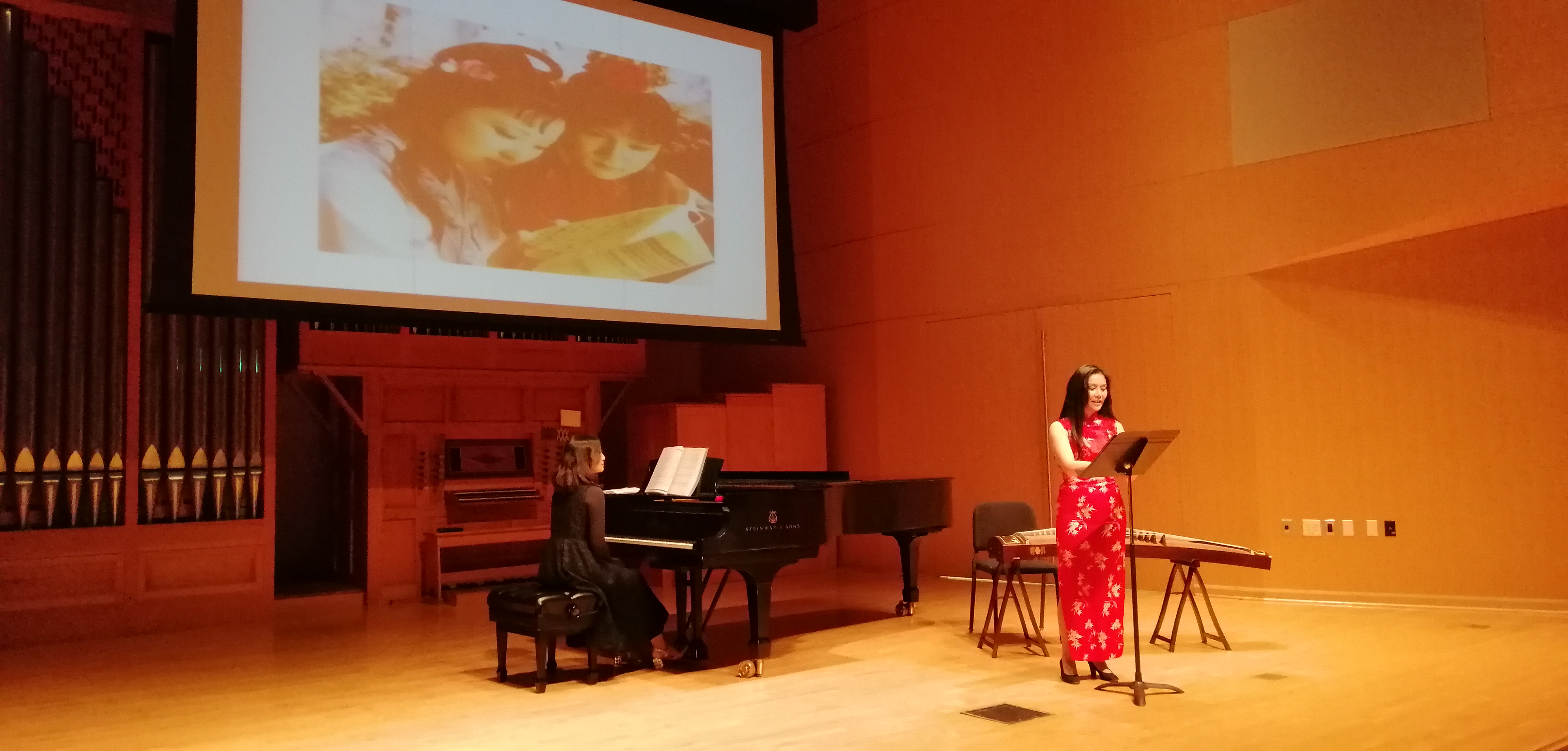 11月19日晚,正在美国中央华盛顿大学访学的私人影院 张进副教授,受邀在中央华盛顿大学的麦金泰尔演奏厅,举办了中国艺术歌曲和民歌讲座音乐会。将东方的音乐文化带到了这所美国著名高等学府。此次讲座音乐会,由语言文学学院和音乐学院共同主办,在师生中引起了广泛关注。演出当晚,麦金泰尔演奏厅座无虚席,数百名师生参与,气氛热烈,中央华盛顿大学副校长marilyn Levine教授,语言文学学院院长Michael Johnson教授,音乐系声乐系主任Gayla Blaisdell教授受邀出席了此次讲座音乐会。