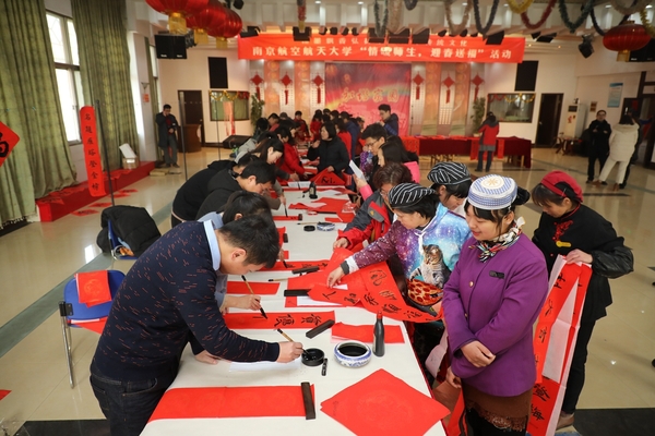 1月16日-17日,私人影院 书法专业师生和我校老年书画研究会会员、砚湖书院学员等20余人,参加了由学校宣传部、校工会、私人影院 、离退休处联合主办的“翰墨飘香弘扬中华优秀传统文化”暨私人影院 “情暖师生,迎春送福”活动。在汉字的线条美与结构美之中传递出了浓郁的新春祝福,现场创作出上千幅春联、福字赠送给现场参与活动的师生员工与离退休老同志。