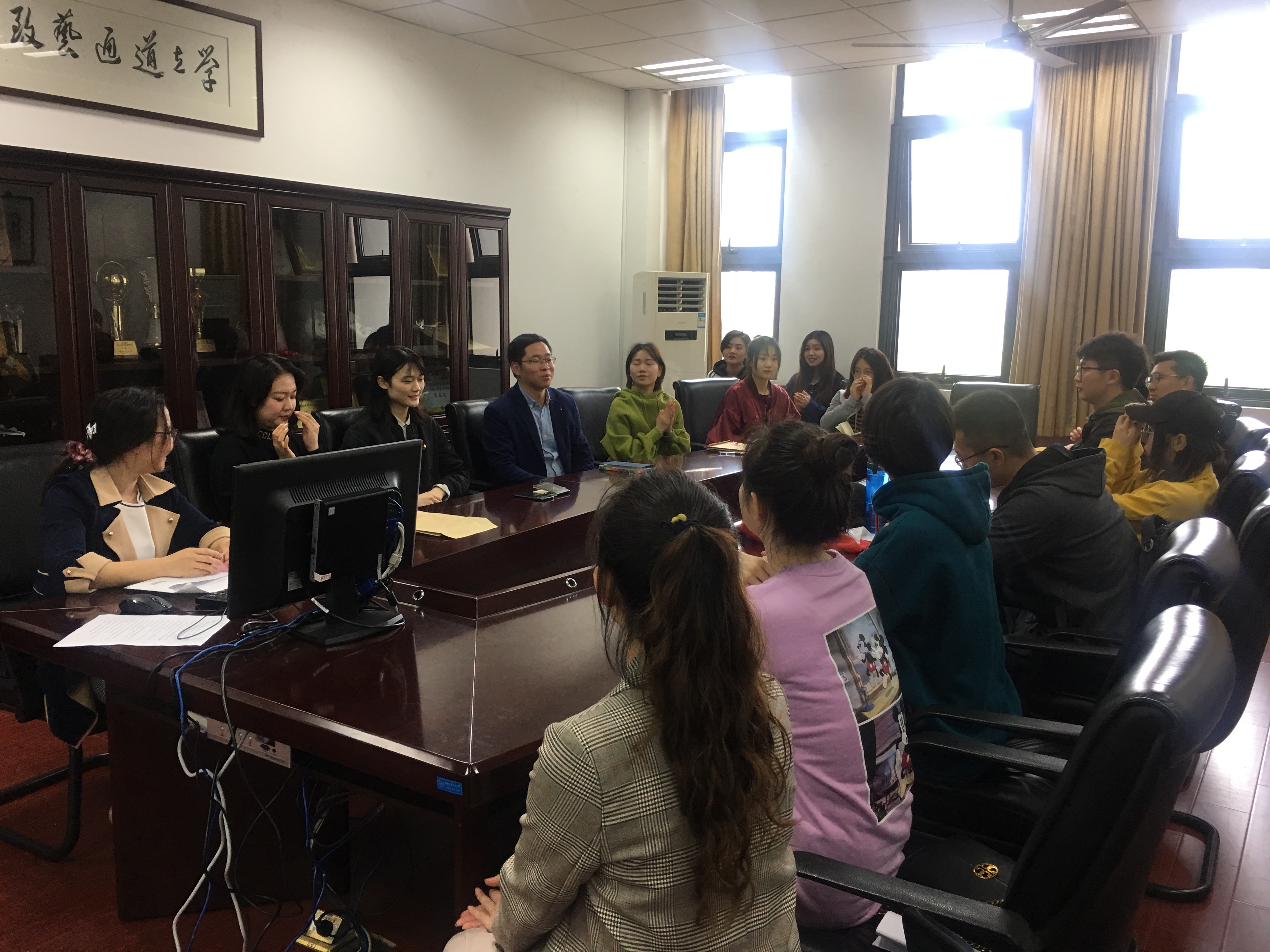 座谈会的最后,围绕习近平总书记在两会期间看望参加政协会议的文艺界社科界委员提出的“坚持与时代同步伐”、“坚持与人民为中心”、“坚持以精品奉献人民”、“坚持用明德引领风尚”进行交流,党委副书记张林老师从身份自信和时代认同两方面与在座的同学们进行了领学,并要求全体党员要坚定自己的政治立场,不断充实自己,加强理论学习和政治素养,真正为同学们起到党员的榜样引领和模范带头作用。