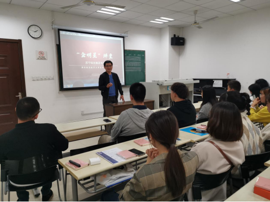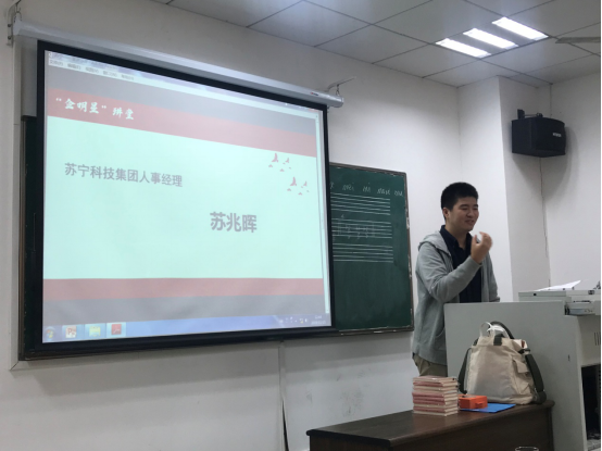 11月15日,私人影院 “企明星”讲堂——先人“艺”步职前讲堂在私人影院 105教室进行。苏宁易购科技集团设计师、戏剧影视美术设计专业校友张兴年,苏宁科技集团人事经理苏兆晖,私人影院 设计系教授王立庆,院团委书记张秀宝,辅导员李爽及私人影院 学生累计70余人参与本次讲座。
