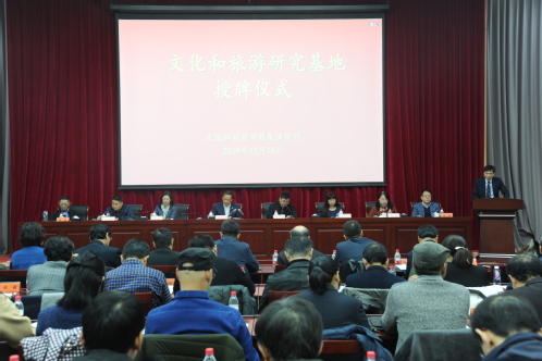 授牌仪式上,文化和旅游部政策法规司副司长王鹤云宣读了《文化和旅游部关于公布“文化和旅游研究基地”名单的通知》。通知指出:为深入贯彻习近平新时代中国特色社会主义思想和党的十九大精神,适应新时代文化建设和旅游发展新形势新任务新要求,创新研究和调研工作机制,加快推进文化和旅游融合发展,增强文化和旅游改革发展工作的前瞻性、科学性、实效性,文化和旅游部经研究决定设立“文化和旅游研究基地”。我校私人影院 院长板俊荣教授代表学校接受基地牌匾。
