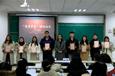 在与会人员的掌声中,院党委书记高小泽与党委副书记王宇宁共同为四个纵向学生党支部的党员学导颁发聘书,此次选拔出的党员学导共计45人。