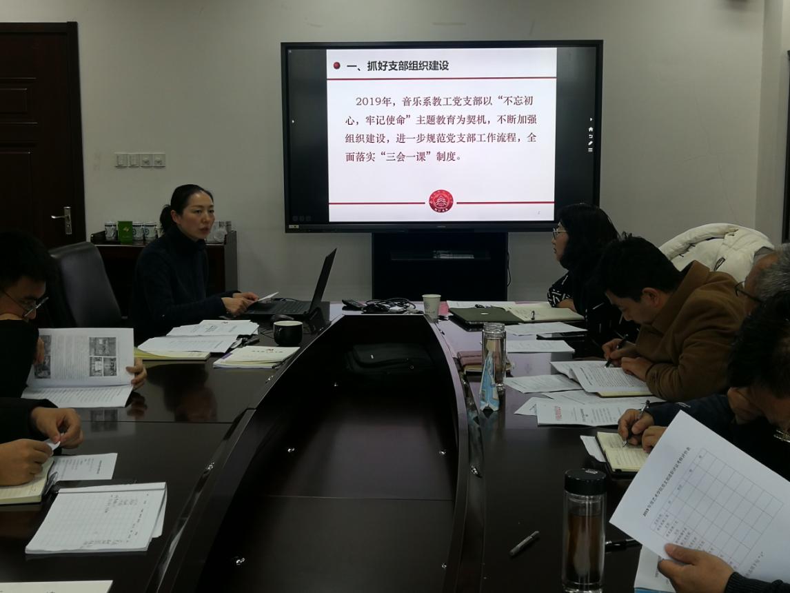 8位党支部书记紧扣《中国共产党支部工作条例(试行)》所规定的基层支部八个方面基本任务,以PPT汇报的形式,向大会展示了党支部一年来的工作及开展“不忘初心、牢记使命”主题教育的情况、主要成绩、存在的不足和整改举措、以及下一阶段工作计划等,既总结经验又剖析不足,既有把自己和工作摆进去的严肃认真,又有持续改进提高的自觉。教工党支部深入开展了对习近平总书记关于文艺工作的重要论述、意识形态工作、师德师风建设等方面的专题学习;学生党支部研究制定了党员学导工作制度,搭建学生党员联系群众的育人实践平台,并按照学科专业设置纵向党支部,实现教工党支部和学生党支部的专业对接,以师生从游推动党建育人、共同成长。党员师生为学校庆祝新中国成立70周年大合唱担任指导、为“笔墨丹心”书画作品展提供作品,保障了活动的顺利进行,在服务和奉献中发挥党支部的引领作用与党员先锋模范作用,促进党建工作与中心工作相融合。党员干部在《红旗文稿》《江苏高教》发表党建理论文章4篇,1项全国党建项目结项,1项党建研究项目获学校立项,1个党课获校党课比赛二等奖,1本记录本获评校“最美笔记”,1篇访谈被“学习强国”平台登载,“不忘初心、牢记使命”主题作品被学校党委推荐至江苏省委组织部。