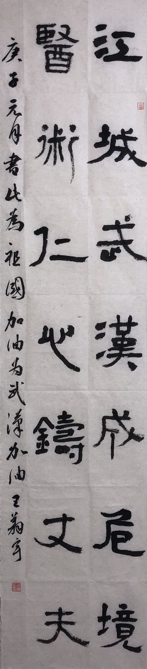 作品名称:楷书《万众一心 抗击疫情》