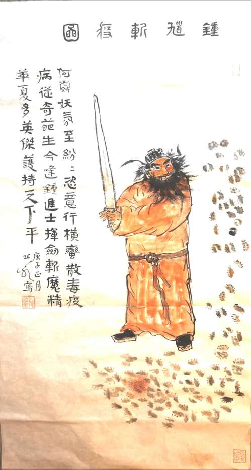 作品名称:国画《钟馗斩病疫》