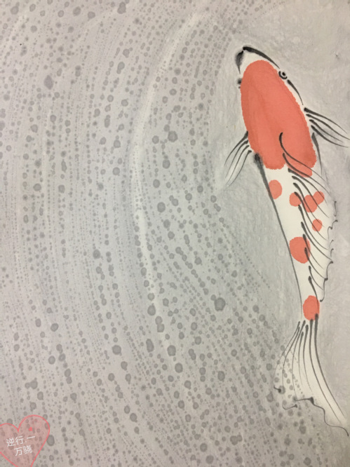 作品《逆行》系列,绘鱼儿在逆流中奋力潜游,向战斗在抗击疫情一线的工作者致敬!