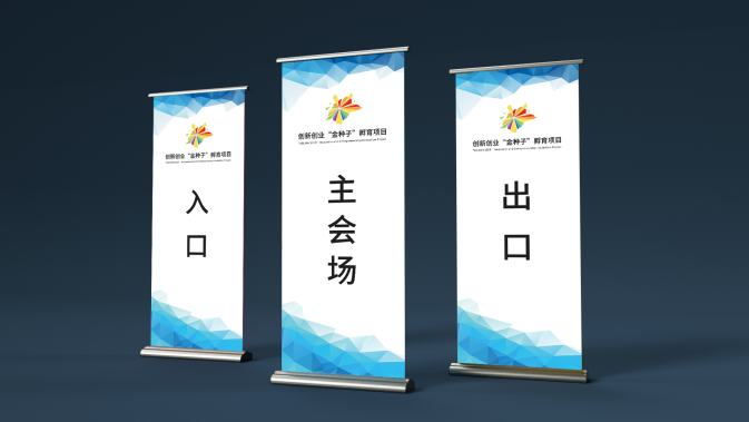 设计灵感来自于活动的主题——金种子,这颗种子采用了非对称的设计,使整体更富动感,放射状的图形充满热烈、奔放的视觉效果,象征着大学生创业者们的活力与朝气和萌动待发的创业热情。多样化的色彩进行点缀,就像创业旅程的色彩斑斓,创业果实的丰富多彩。标识动静结合,色彩鲜明,寄寓了大学生创业者们在金种子孵化项目中迸发无限闪耀的创业灵感与激情。