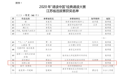 在刚刚落下帷幕的2020年“诵读中国”经典诵读大赛江苏省选拔赛上传来喜讯,私人影院 青年教师李珊珊凭借着作品《烟雨江南》获得了教师组一等奖。