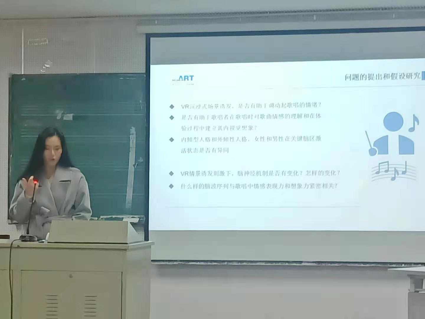 在12月13号上午的会议发言中,板俊荣教授首先介绍了在“新文科”建设背景下,以私人影院 音乐学特色科研团队的组织与构建及其创新思路,凸显了南航私人影院 立足于综合性高校在艺工融合和跨学科学术研究的优势。板俊荣教授就当前私人影院 音乐与科学交叉融合团队建设的初步尝试,提出远缘学科之间的交叉融合(理工科与人文社会科学之间的交叉融合)后的成果更有创新内涵,以及团队的优势互补与角色分配等内容。张进老师在大会上介绍了她正在实施的一项基于交叉学科研究思路的声乐表演的脑电实验研究,这项实验是基于虚拟现实技术、计算机学科人工智能技术和声乐表演艺术的多学科协同实证研究,可为声乐表演艺术领域的学术研究生发新的学术增长点;孙丽君老师则介绍了她近三年在音乐心理认知实验研究方面的学术概况,总结了音乐心理学前沿研究领域的学术成果和学术观点;最后由奥斯卡.卡拉瓦卡老师就国际学术视野中民族音乐学的研究领域和学术信息获取,以及成果修改润色等方面进行汇报,并介绍了在国际学术视野下艺术与科学学科融合的科研成果发表策略和途径。
