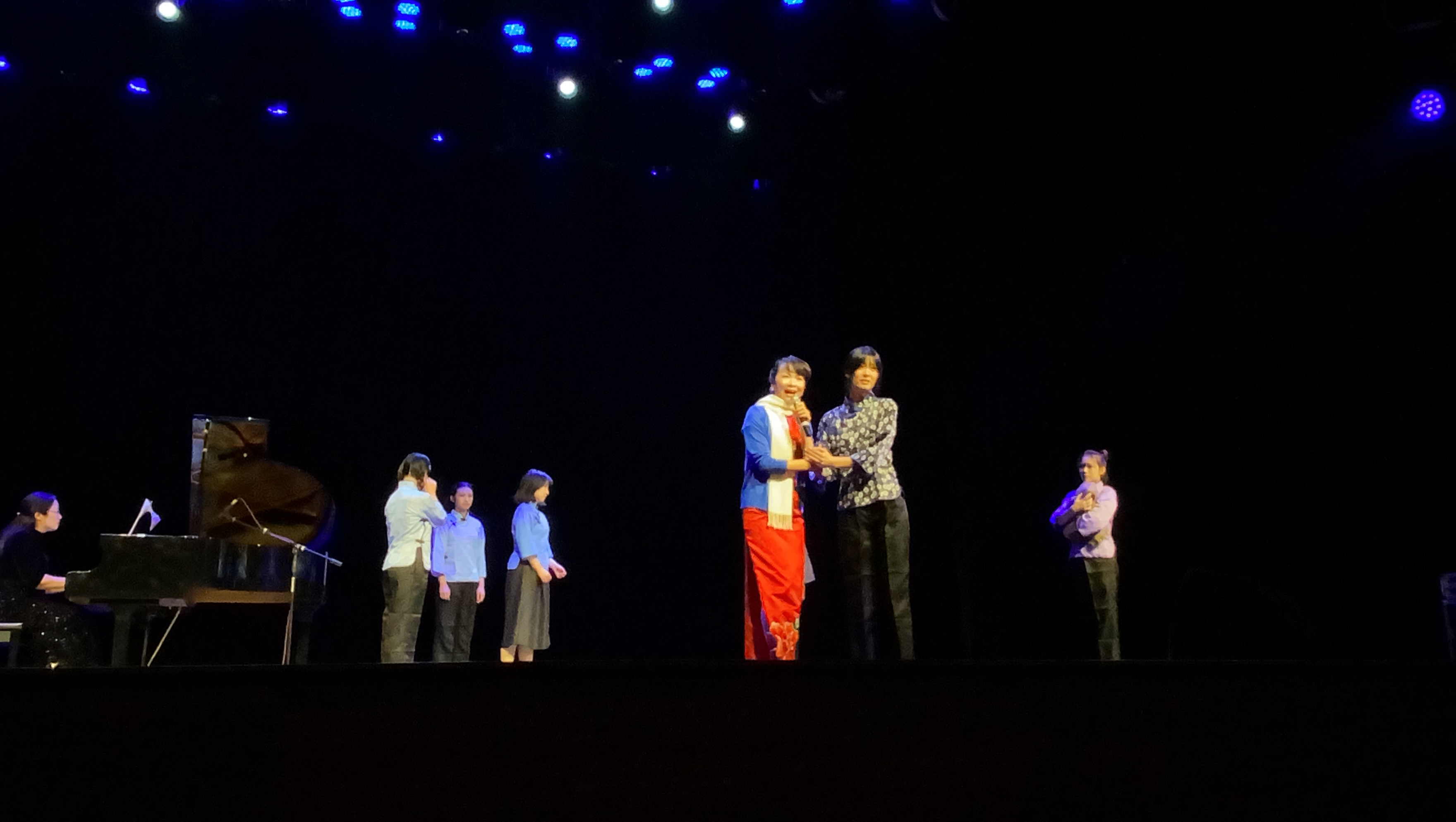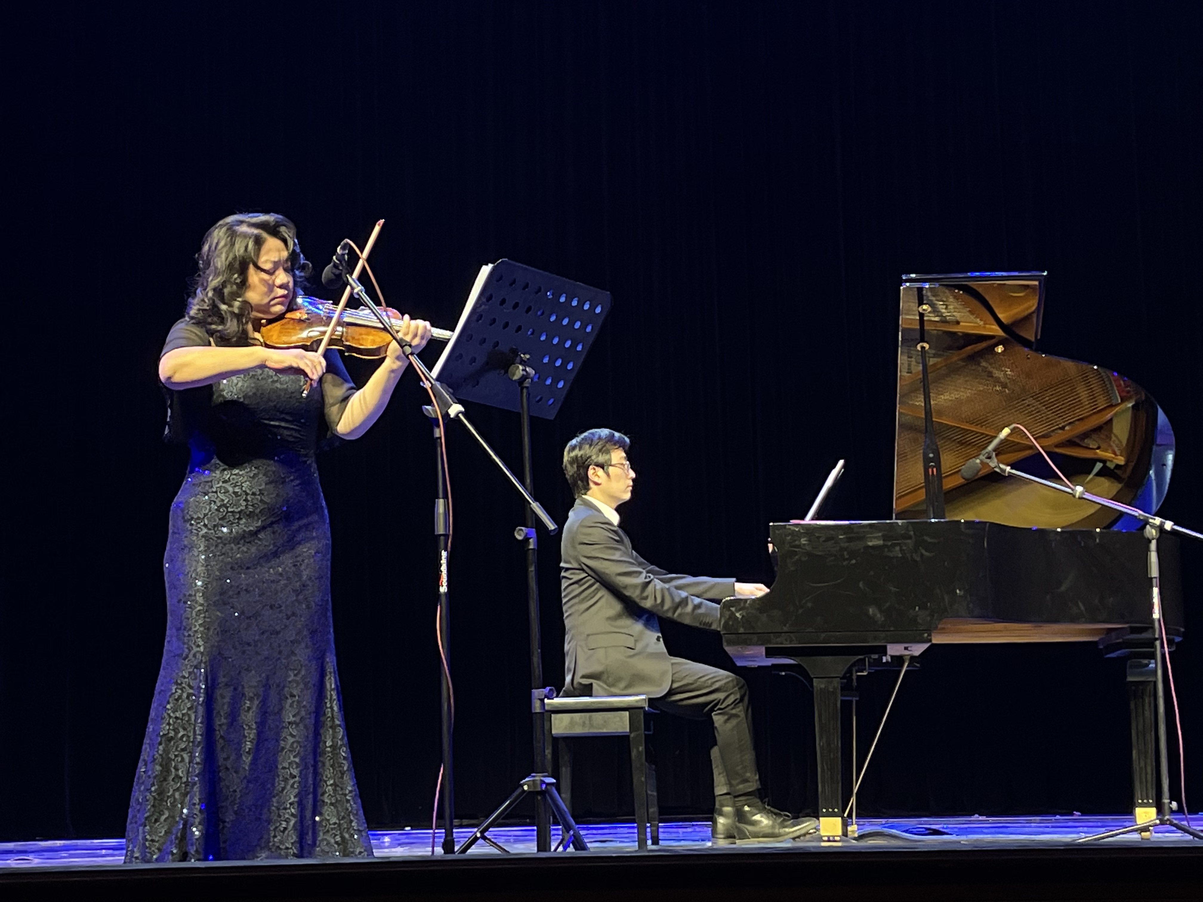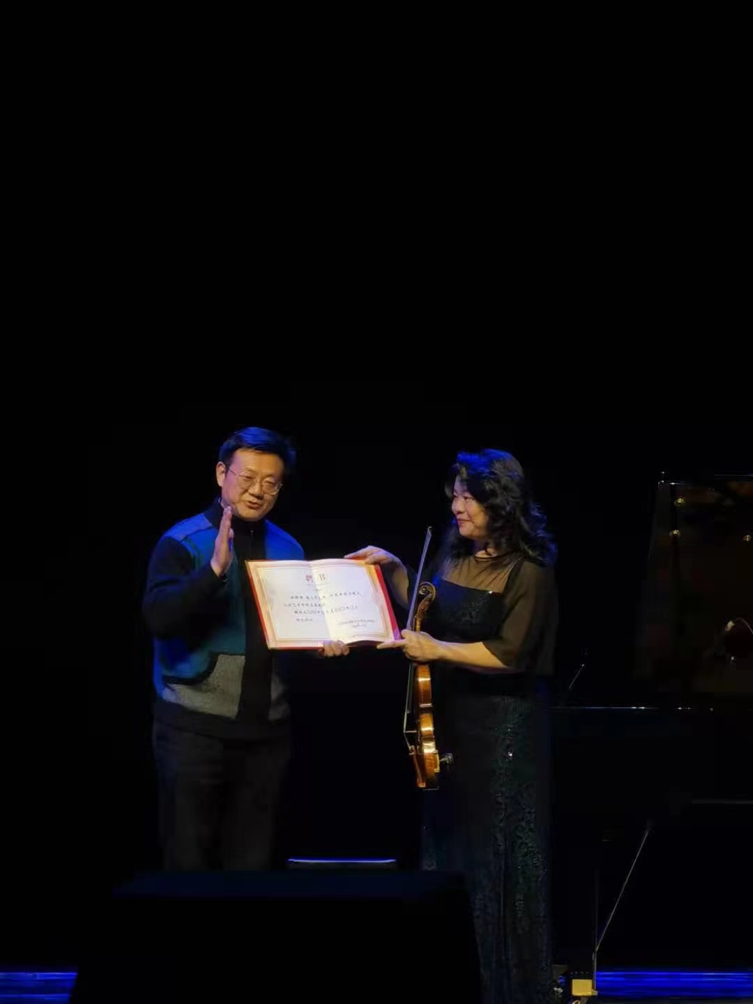 上半场的音乐会在五位老师带来的声乐盛宴中,把观众们对音乐的热情推向了顶峰。接着,大家期待已久的盛小华女士的小提琴音乐作品的演奏也拉开帷幕。
