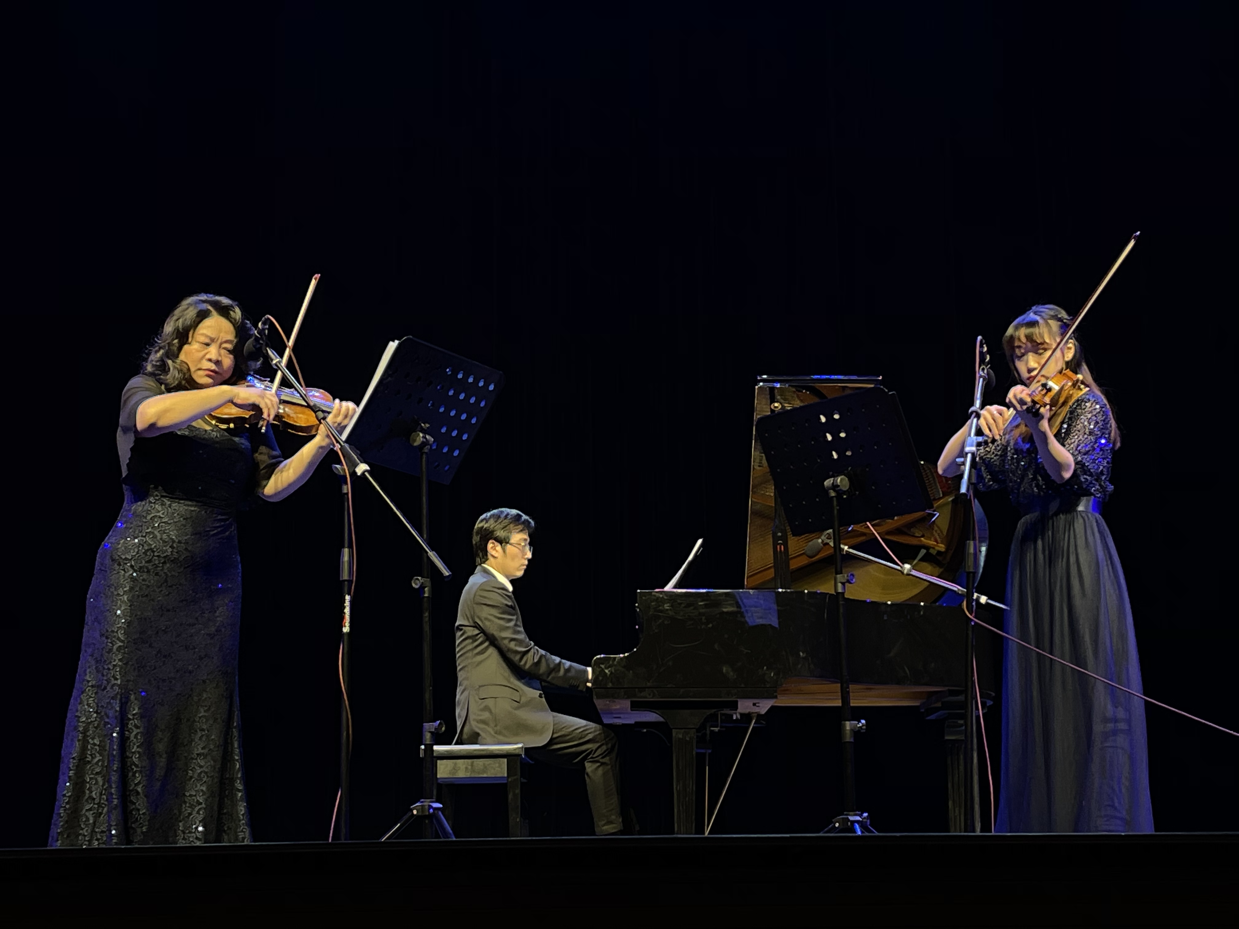她携手其研究生顾添艺带来了三首优美的双小提琴名曲,《圆舞曲,波卡舞曲》、《美国乡村音乐印象》和《天堂影院》主题曲。