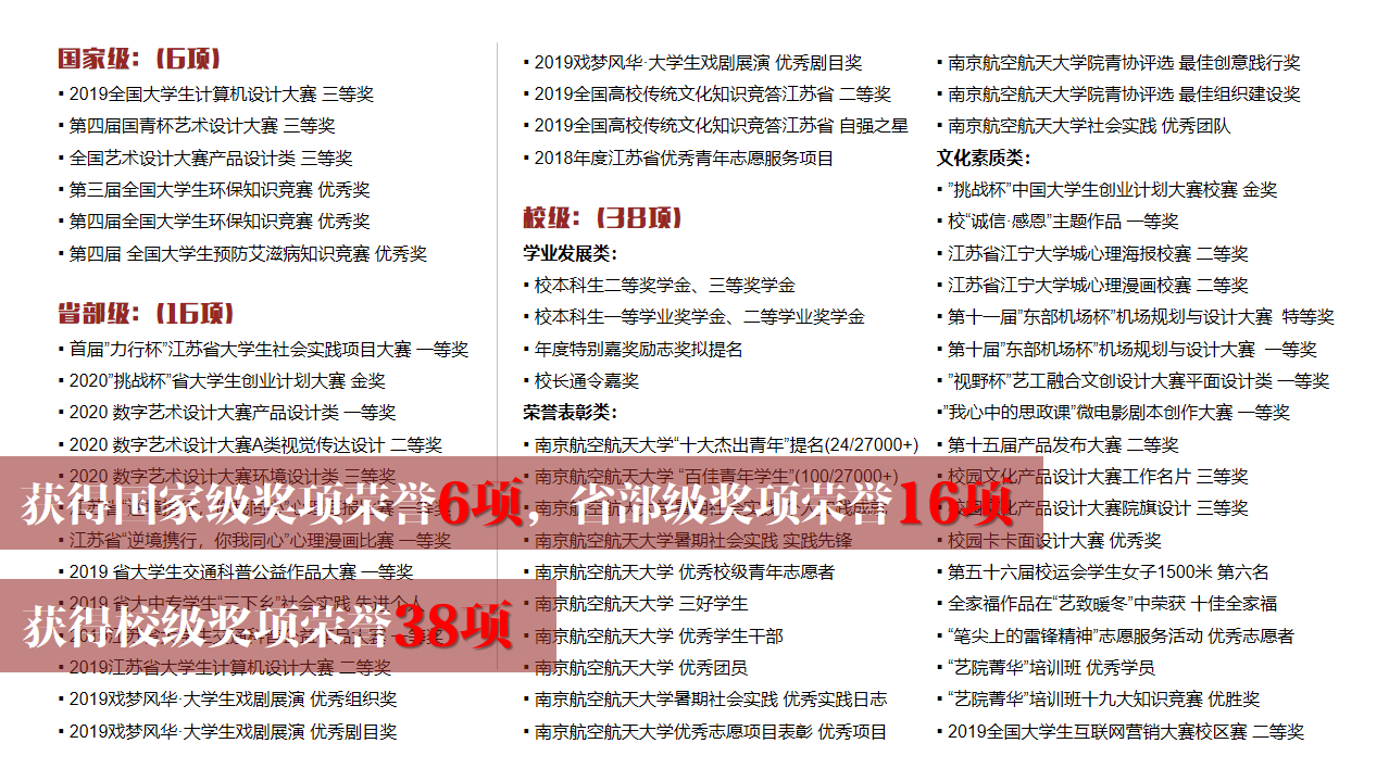我从信仰中汲取力量,找到前进的方向。从担任共和国的脊梁《我国直升机泰斗王适存》剧组助理,打造视觉盛宴;到绘制溧阳市卡通版旅游地图,为天目湖校区师生提供便利。用专业所学服务校园,是我筑梦南航的第一步尝试,是我对鸿鹄之志追寻的起点。