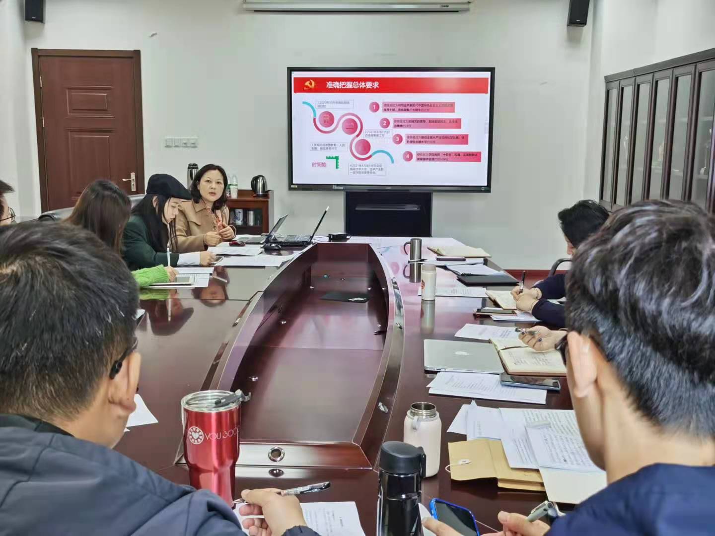 2021年是学院党委换届之年。张钟勤同志首先向在座的各位党员同志做了题为“以高度政治责任感做好学院党委换届选举工作”专题辅导党课,详细介绍了党委换届的总体要求、干部选人的原则标准、换届选举的程序步骤等,并通报了学院第四次党员大会工作安排和组织筹备情况。王宇宁同志带领大家学习了私人影院