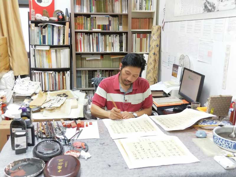 在此之前,邱教授试写二件横幅,尺寸略小,行楷风范,别具风神。